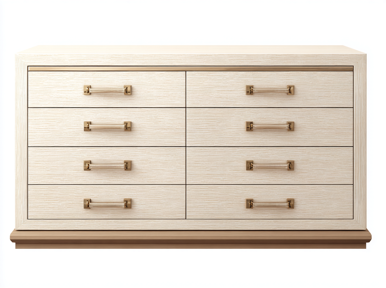 El diseño incluye ocho cajones que proporcionan una amplia capacidad de almacenamiento para organizar distintos artículos. Su estructura amplia y equilibrada permite colocarla fácilmente en dormitorios vestidores o zonas de almacenamiento manteniendo el espacio ordenado.