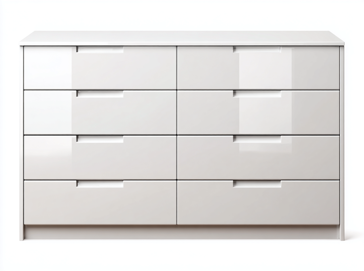 Esta cómoda de diseño moderno es ideal para organizar ropa y accesorios en el dormitorio. Su estética minimalista en color blanco aporta luminosidad y orden al espacio.